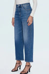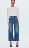 The new must-have jean with a twist. Kyra sits confidently at a high rise with Pistola's signature bowed leg silhouette and cropped 28" inseam. The subtle curve creates dimension while the wide ankle opening adds modern proportion with a new wide angle for the season. Fashion detail seaming, including a twisted seam that moves forward and yoke seams in the back, brings modern denim classic sophistication. Crafted from their signature comfort stretch denim in Soho, a medium vintage wash with subtle fading that feels both contemporary and timeless