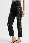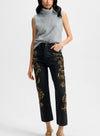 Veronica Beard's classic straight-leg jean, the Daniela is crafted from premium non-stretch denim in a pre-faded black wash, detailed with metallic bead and sequin embroidery down the side leg. Featuring a flattering high waist, cropped ankle, and timeless five-pocket design, it's a true statement style you'll reach for again and again. These ankle-length jeans pair well with ballet flats, sandals, and loafers for an effortless look.