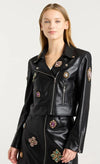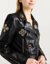 Elevate your outerwear with this faux leather jacket featuring embellished patches that add luxurious detail to its bold design. The asymmetric zipper enhances its edgy, fashion-forward appeal, making it a standout piece for effortlessly chic looks.