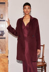 The Row Brush Coat features a classic peak lapel collar and structured long sleeves for a timeless silhouette. Designed with a double-breasted front and two rows of buttons, it balances refined tailoring with practical warmth. Two front flap pockets offer functional ease, while exposed seams along the sides add subtle edge and visual interest to the clean lines. Fully lined for comfort, this coat is crafted with a touch of wool for a softly brushed texture—perfect for layering through cooler months.