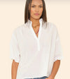 Thr bestselling Cam top is updated this season in Xirena's classic lightweight woven cotton poplin for a lived-in look and feel. Cam is an easy popover top with a ruffled V-neck and sleeve cuffs, back pleats, and high low shirttail hem.