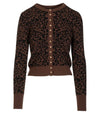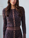 Bring bold texture to your fall layers with the Tulum Cardigan. Featuring a rich brown and black leopard jacquard knit, this crewneck button-down is accented with gold hardware and ribbed trim for a polished finish. Slightly cropped for a flattering, modern silhouette, it pairs effortlessly with denim or trousers.