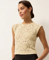 From cabanas to cocktails, this statement shell adds instant texture and style to your vacation wardrobe. With detailed crochet fabric and subtle cap sleeves. Rainey is perfect paired back to denim or back to the Marie Oliver Luca Skirt.