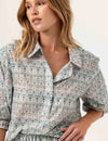 Inspired by the geometric beauty of traditional zellige tilework, Brooklyn Shirt is designed in an intricate floral motif in a refined, feminine silhouette that sits at the waist with an elastic band. Brooklyn has a 3/4 length sleeve measuring 17 inches for size small.