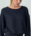 Made in Sunday's knit boucle fabric that is lightwieght with Textured comfort. Meet: Miri. It features an adjustable elasticized hem, allowing for versatile styling, and a slightly open crew neckline that beautifully frames necklaces. Billowy long sleeves add subtle volume, while the relaxed fit through the body ensures ease (sizing down offers a more fitted look) Slightly cropped, it’s designed to sit at your natural waist, making it perfect with high-waisted favorites. Looks great back to the We are Sundays Audelia Pants