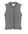 Feminine knit vest designed for versatile styling. Perfect for lounge or travel, while also being cool with denim. Looks great back to denim.